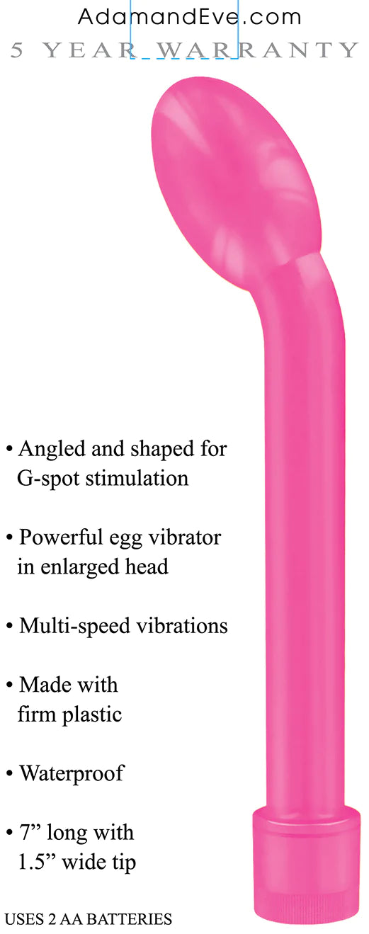 Adam & Eve G-Gasm Delight, smooth curves and a large tip provide superior G Spot orgasms. This G-Spot vibrator is a classic design and easy to use. The enlarged head contains a powerful egg vibrator for focused G-Spot clit or prostate stimulation. The twist base dials up soft to intense vibrations to pleasure your clit and deliver toe-curling G-Spot orgasms when inserted.