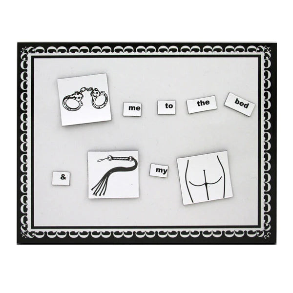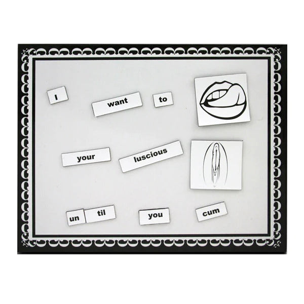 Use these titillating magnetic words and images as foreplay to inspire steamy, hot, sex-filled nights. Or use them as a hilarious party game, creating humorous sentences with your friends. A fun and sexy way for couples to leave messages for one another. "Wild Hot Sex" includes 400 sexy words and 20 hot images with limitless erotic combinations. Each set also comes with 2 magnetic receptor pads which allow couples to leave messages privately. This game includes: 400 magnetic words or word fragments. 10 blank word tiles. 20 sexual images. 2 magnetic receptor pads. 1 instruction sheet.